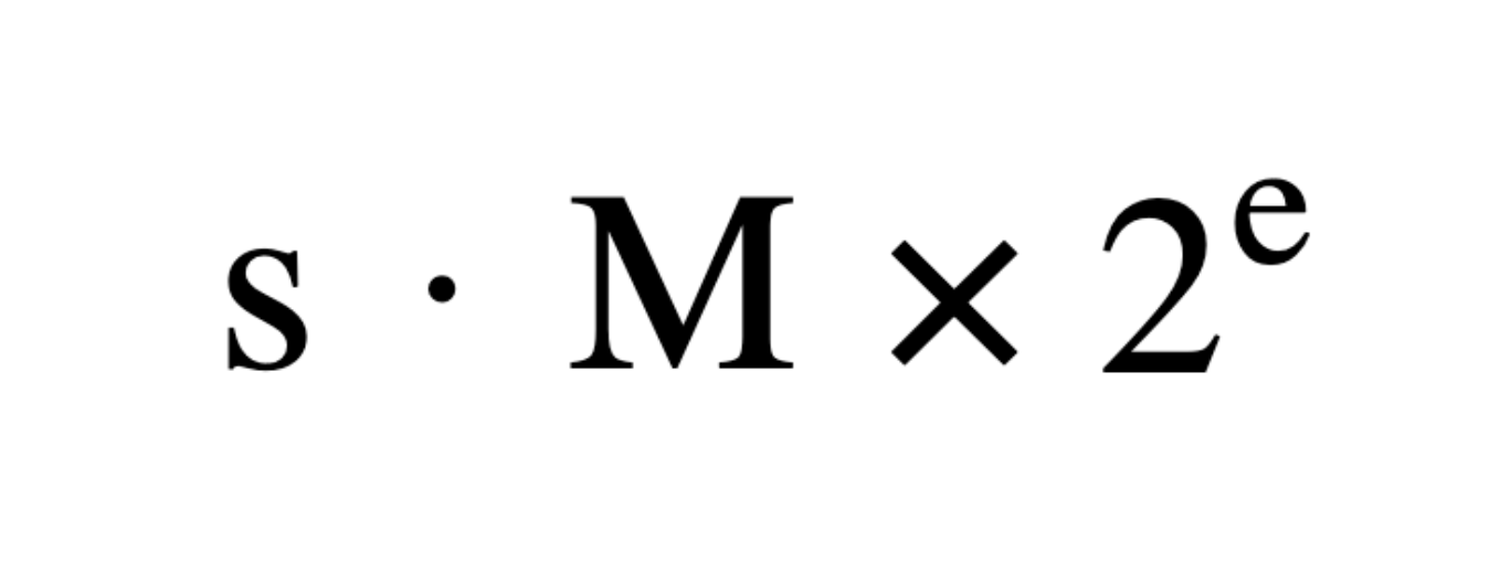 Floating point numbers are effectively a binary scientific notation. They utilize three components: a sign bit (s), a mantissa (M) and an exponent (e).